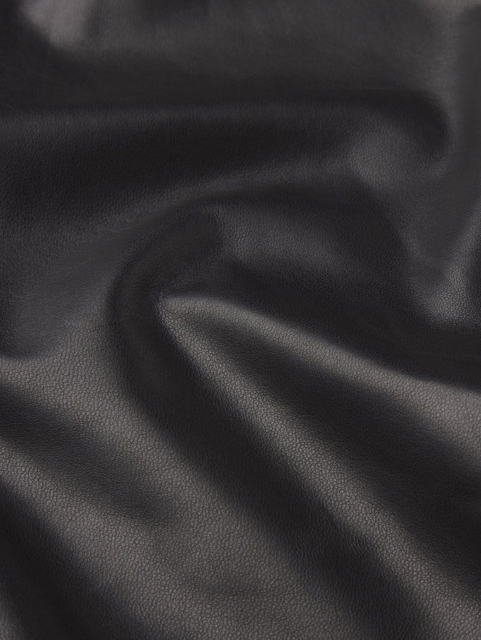 A fresh take on the classic shift dress, crafted in lightweight leather with a gathered collar. Minidress length, with subtle seams down the front and across the hip.