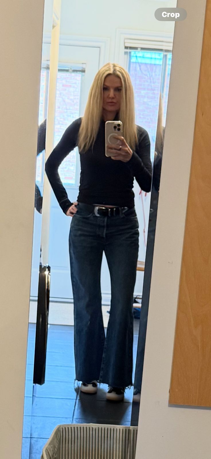 For the laid-back LA girl in us all, this white jean sits just above the hip and breaks into a relaxed, wide-leg flare. The spacious fit is defined by rigid denim for structure and a raw, frayed hem for an authentic vintage feel.