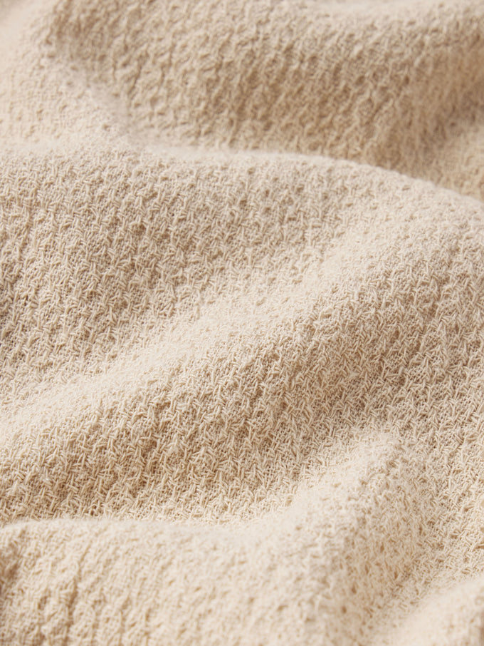 The Open Weave Short Sleeve Shirt is crafted from a breathable cotton blend with subtle texture, featuring a clean button front and front patch pocket, and designed to pair back with the matching Open Weave Shorts.