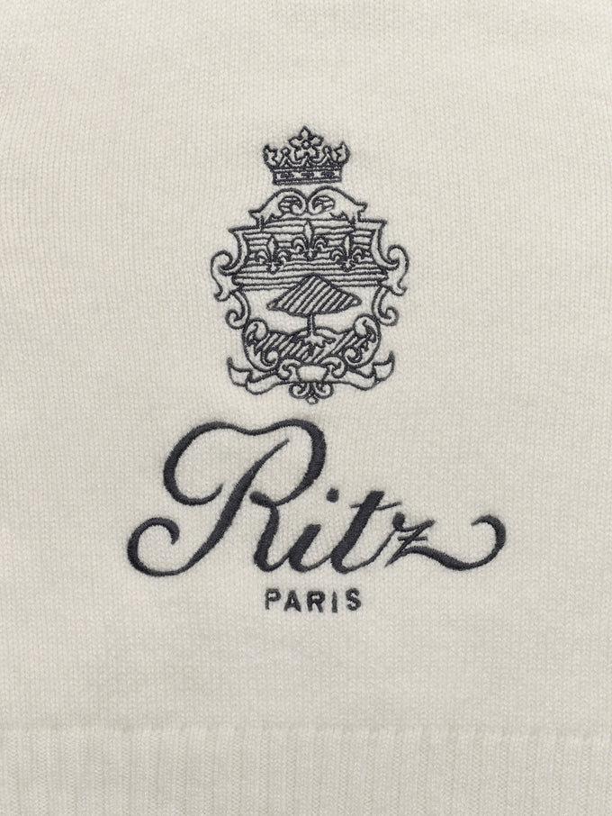 We gave the cashmere crewneck—a classic French-girl silhouette often seen under the glass roof of the Bar Vendôme—a modern, feminine redux. With a slim fit, slightly cropped hem, and ribbed cuffs and hem, and embroidered Ritz Paris and FRAME logos, this capsule collection edition pairs particularly well with high-rise denim.