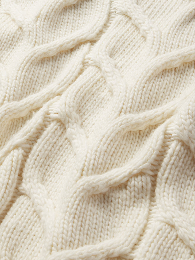 The Cable Funnel Sweater is crafted from 100% merino wool, featuring a slightly cropped silhouette and rolled funnel neck for a modern take on timeless cable-knit texture.